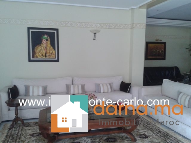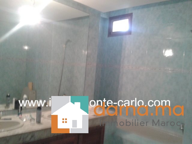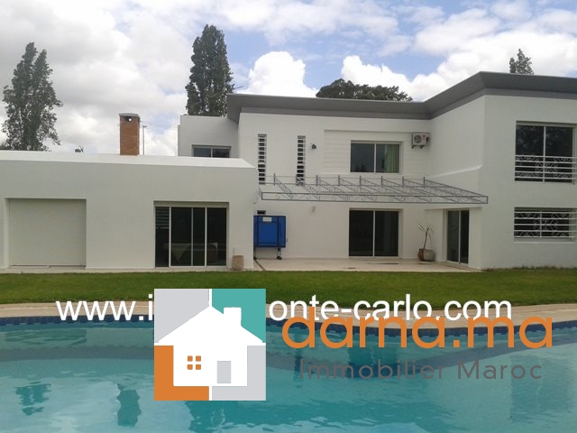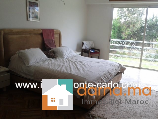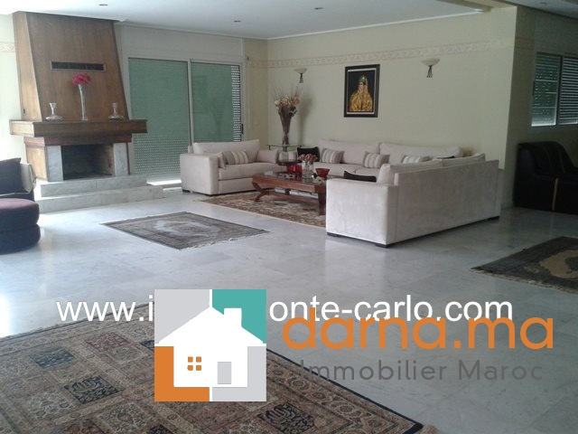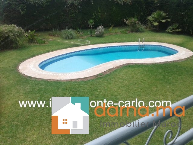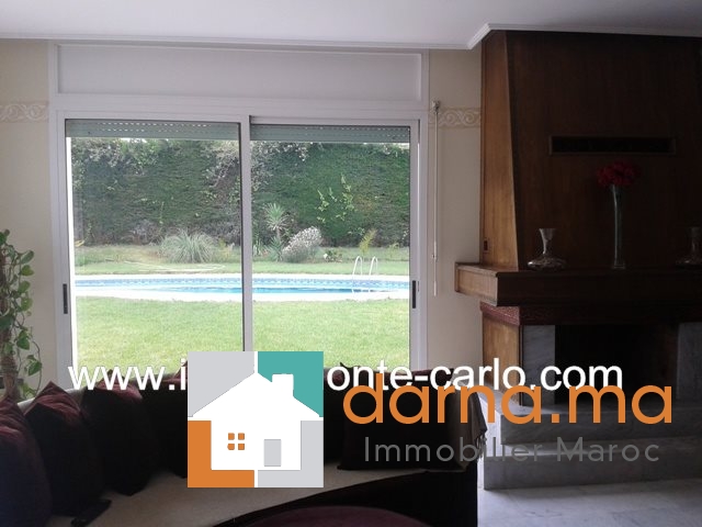 Villa à louer à Rabat, jolie villa bénéficiant de prestations luxueuses, avec piscine, chauffage, panneaux solaires, puit.  Situé sur un endroit tranquille en plein cœur d’un quartier branché et résidentiel .Villa construite sur 2 niveaux avec un beau jardin fleuri et grand  garage, comprenant double salons avec un coin cheminée, une grande terrasse couverte offrant une superbe vue sur la piscine et le jardin ,un séjour lumineux, une salle à manger, WC des invités,  5chambres : une suite parentale avec dressing et salle de bain avec jacuzzi, grande terrasse, chambre d’amis avec salle de bain,  3chambres à coucher chacune avec sa salle de bain et balcons, une cuisine aménagée, buanderie,  logement de personnel, débarras,...Pour plus d’informations ou visite n’hésitez pas de contacter notre agence immobilière Immo Monte-Carlo au N° de tél: +212661464037 /+212661212547 ou Tél/Fax: +212537755043 ou par E-mail : Cette adresse e-mail est protégée contre les robots spammeurs. Vous devez activer le JavaScript pour la visualiser. ou visitez notre site www.immomonte-carlo.com ou  rendez-vous au 15, Av. Al  Abtal N°4, Agdal RABAT MAROC