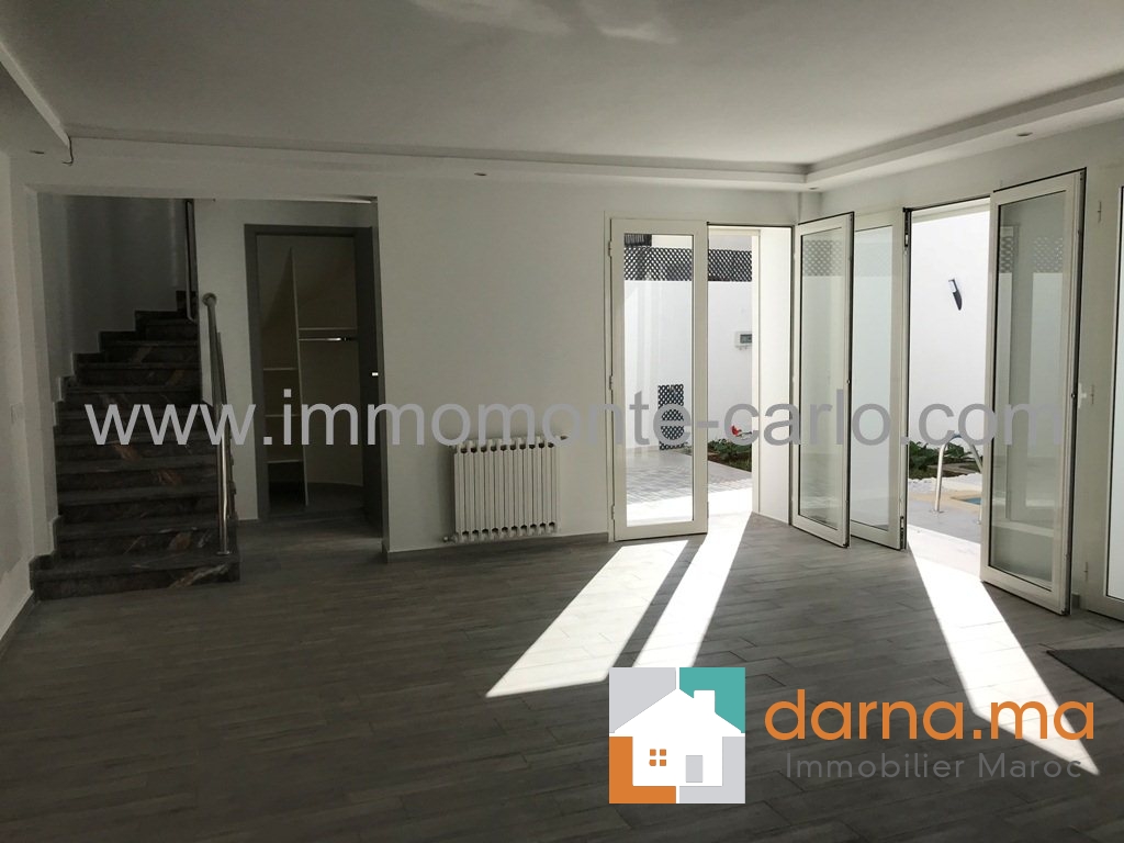 Location Rabat villa de très haute standing neuve moderne avec piscine, très bien située et bien sécurisée, avec chauffage central , climatisation, composée de double salons cheminée donnant sur la piscine et belle cascade, salle d’eau des invités,  4 chambres à coucher avec 3 salles de bain dont une suite parentale avec vue panoramique sur le Bouregreg et l'océan avec terrasse dressing et salle de bain, cuisine moderne bien équipé, buanderie, un grand garage,  logement de personnel …Pour plus d’informations ou visite n’hésitez pas de contacter notre agence immobilière Immo Monte-Carlo au N° de tél: +212 (0)6 61 46 40 37 /+212 (0)6 61 21 25 47 ou Tél/Fax:+212 (0) 537 755 043 ou par E-mail : Cette adresse e-mail est protégée contre les robots spammeurs. Vous devez activer le JavaScript pour la visualiser. ou rendez-vous au 15.Av, Al Abtal N°4, Agdal RABAT MAROC.