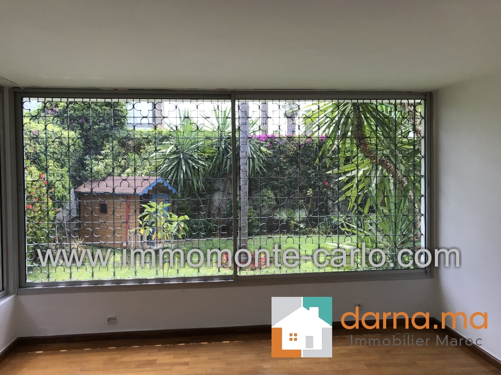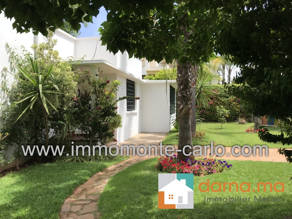 Location villa de plain pied avec un très joli jardin dans un environnement calme et proche de toute commodités, comprenant double salon avec cheminée et une véranda donnant sur le jardin, séjour qui peut être une chambre d’amis, une cuisine, trois chambres dont une chambre parentale composée de 2 pièces, deux salles de bains,  un grand garage automatique, jardin avec puit, logement de personnel avec salle de bain, débarras, chambre de gardien avec salle d’eau.