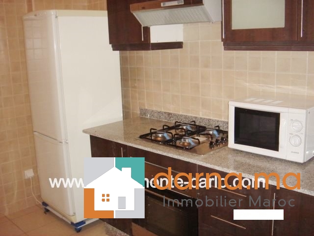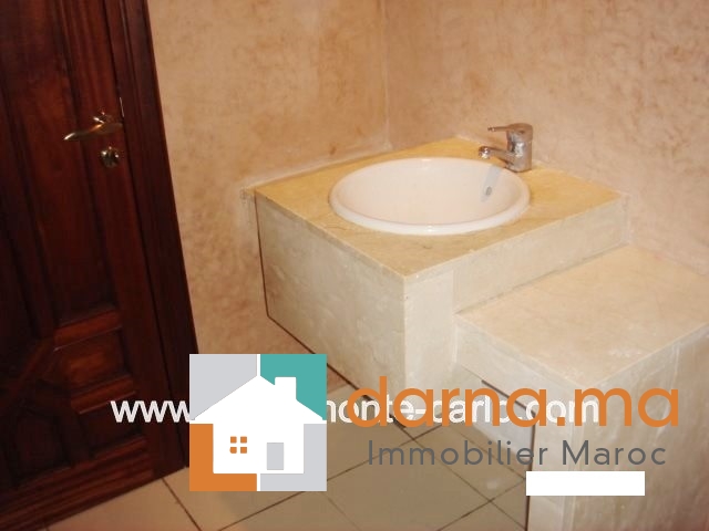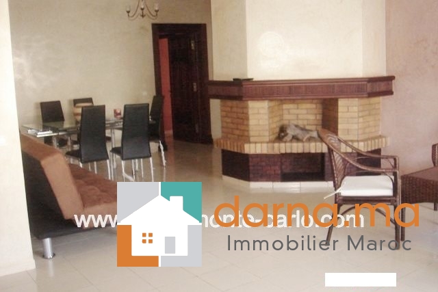 Location appartement meublé avec terrasse à Rabat à Bassatine Al Manzeh, 2Façades (Un balcon par façade) chauffage et climatisation dans toutes les pièces, sans vis-à-vis, immeuble avec ascenseur dans une résidence fermée avec jardin, sécurisée 24/24, dans un endroit calme et proche de toutes commodités, composé de 2 salons avec cheminée, séjour, salle des invités, terrasse, suite parentale avec dressing, salle de bain et balcon, deux chambres avec salle de bain et balcon, une cuisine équipée, buanderie, débarras, garage.