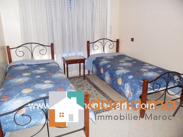 Location duplex meublé à Harhoura Plage- Temara, avec climatisation dans toute les pièces,  dans une résidence sécurisée 24/24 calme et bien entretenue, dotée de piscine, espaces verts, parking, composé d’un salon,  terrasse, 2chambres à coucher, cuisine bien équipée, salle de bain, toilette, meuble propre et moderne.