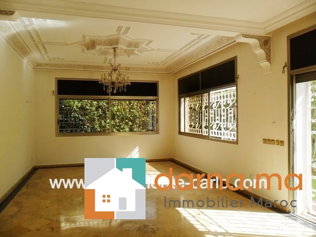 Villa  à louer à Hay Riad à Rabat avec  chauffage central, proche de toutes les commodités dans une rue calme rideaux électriques, énergie solaire, hammam beldi, sécurité.